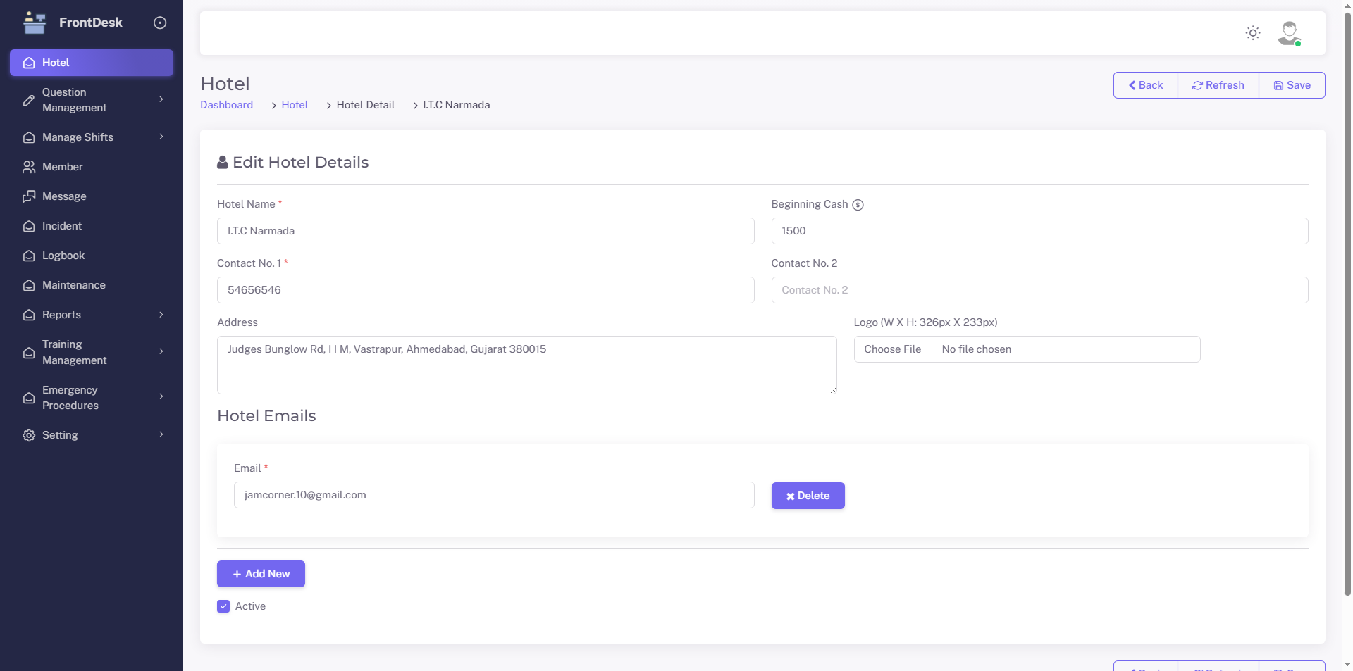 • Hotel Profile Setup – Manage hotel-specific details, shift timings and ideal cash settings.
