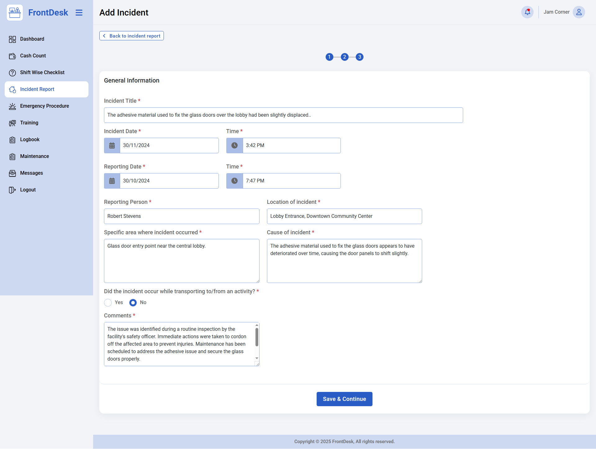 • Incident & Maintenance Reporting – Digital forms for incident logging and maintenance with admin visibility and comments.