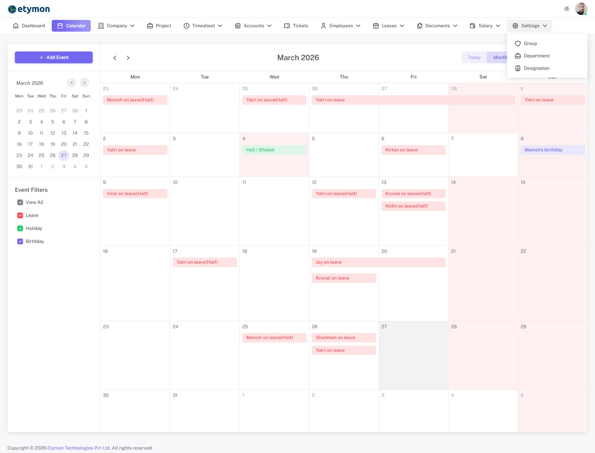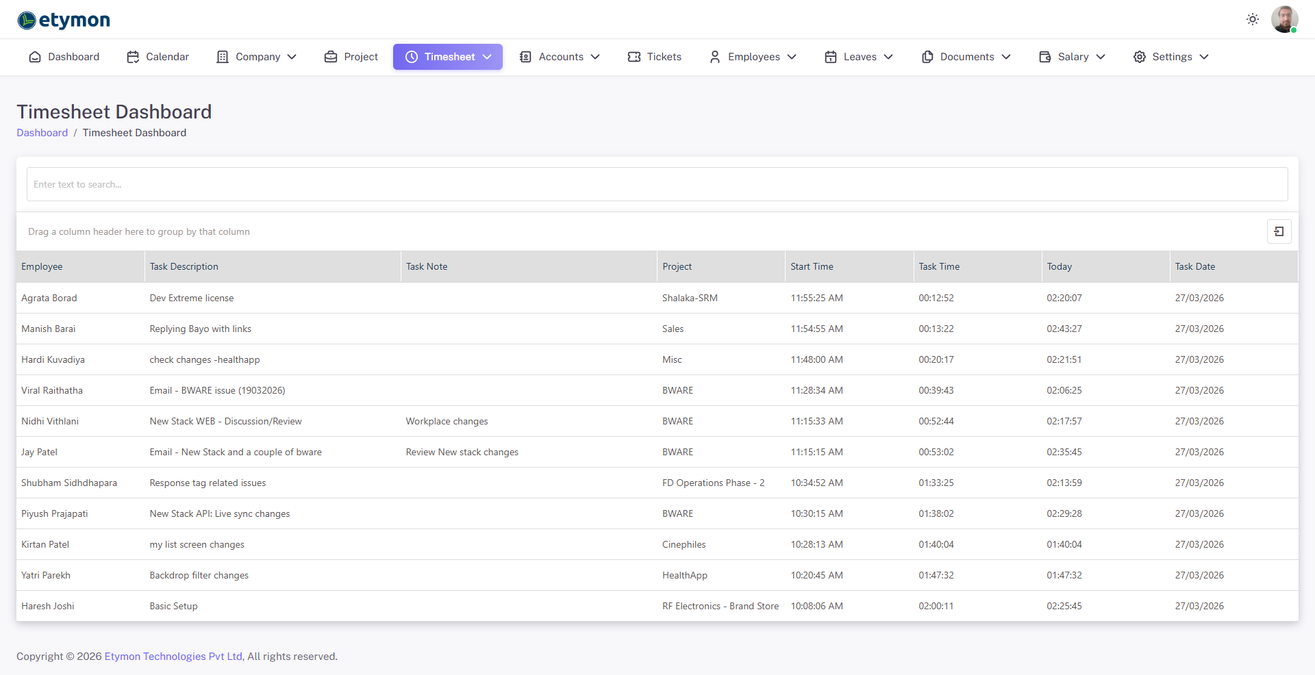 HRMS is Etymon's Product for Human Resource & Project Management System, built to streamline day-to-day operations across the organization. From real-time attendance tracking and project timesheet management to leave planning and team collaboration, HRMS serves as the central hub for managing people, projects, and productivity at Etymon Technologies.